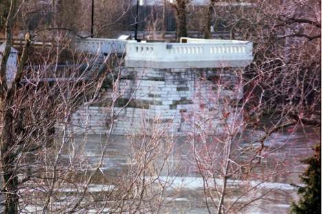 The Overlook provides a vantage point looking toward Lafayette form West Lafayette above the Wabash River. The Wabash Heritage Trail loops around on both sides of this section of the river.